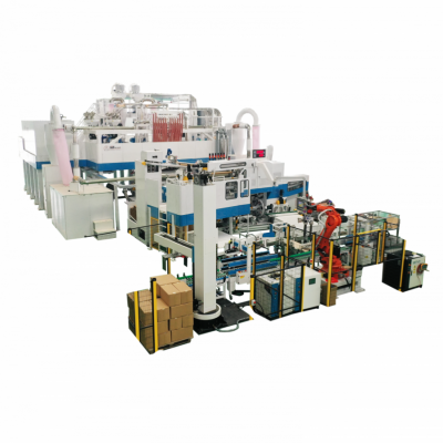 干法隔膜基膜流延法生產(chǎn)工藝流程:自動計量稱重系統(tǒng)---單螺桿塑化擠出單元---精密過濾單元---熔體計量泵---單腔或者三腔自動調(diào)整模頭---冷卻成型單元---退火熟化單元和定型單元---自動測厚儀單元---電暈處理單元(選配)---全自動雙工位轉(zhuǎn)塔式收卷機(jī)---成品包裝